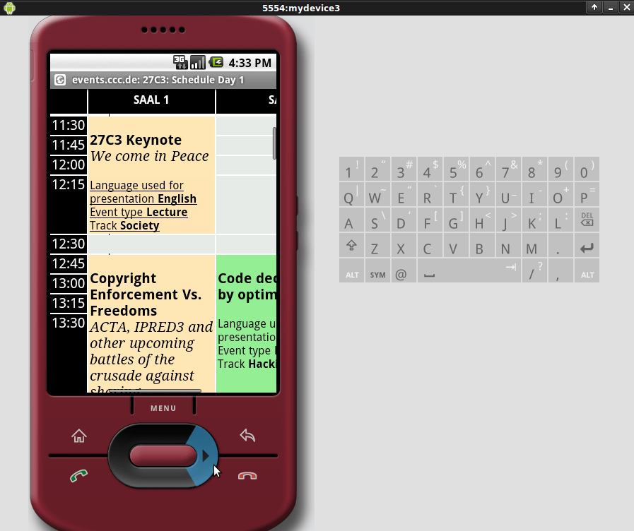 So this is my version of the 27c3 Android Fahrplan App. At the moment it only links to the fahrplan website, depending on which day/event you click. The advantage is, it’s always uptodate;)